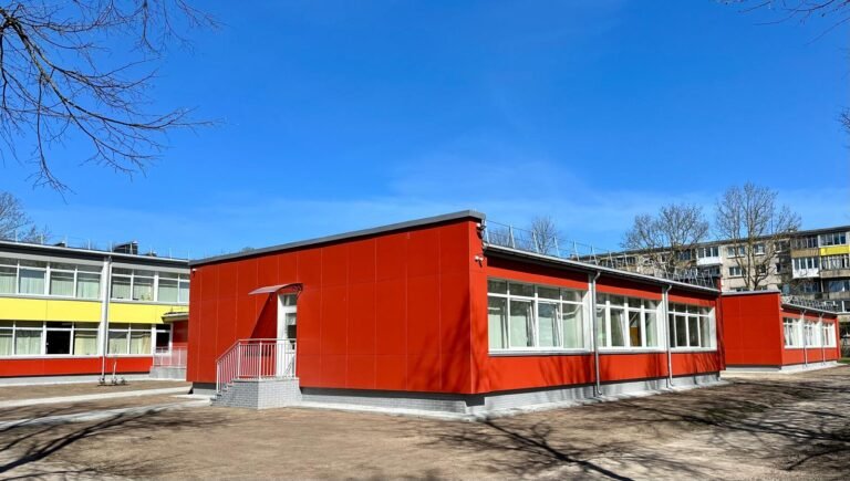 At the “Saulutė” kindergarten in Klaipėda, the following renovation works were carried out: the renovation of the bituminous roof to ensure its longevity and resistance to weather conditions; the installation of a ventilated facade to improve the building’s insulation and appearance; the installation of windows and connection of the fire alarm system to ensure the safety of children and staff; interior renovations, including updating and adapting the premises for functionality; and the installation of facilities for disabled children to ensure equal conditions for all children.